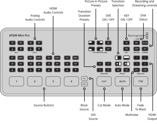Ar ATEM Mini Pro iespējams pārslēgties tiešraidē ar 4 augstas kvalitātes video kameru ieejām (HDMI inputs), lai iegūtu vislabākās kvalitātes attēlus. Ar ATEM Mini Pro savu video translāciju iespējams padarīt saistošāku, vizuāli pievilcīgāku, tehniski kvalitatīvāku un profesionālāku.